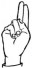 На ћирилици написано БУДИМИР РОГЛИЋ састоји се из 13 слова [?]. Исписано ћириличном једноручном азбуком за глувонеме:
